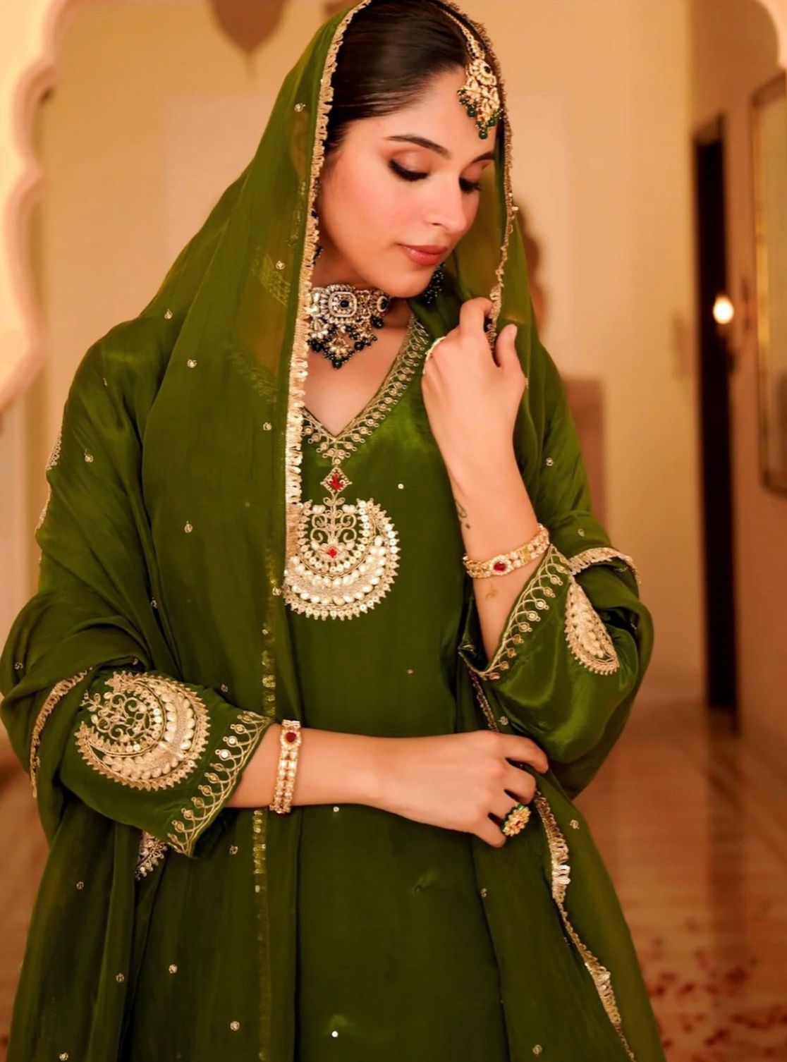 *Look straight out of a dreamy movie set as you turn around and walk in this elegant flaired suit ! The perfect of traditional wear*