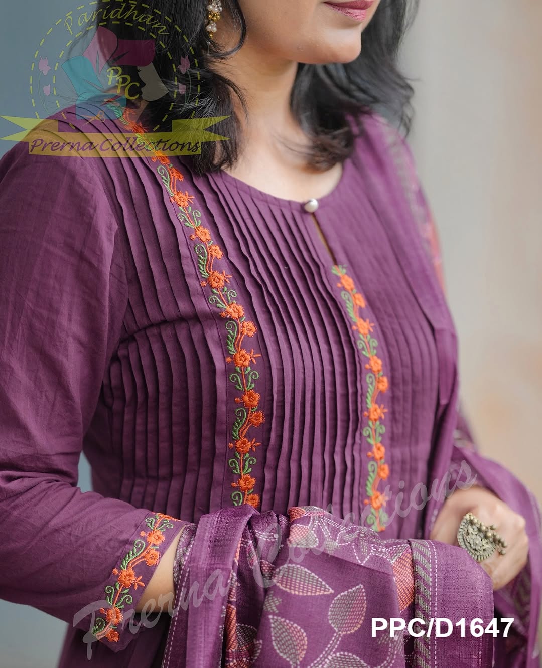 Dress like the queen you are! 👑✨ Pure cotton kurti with classy pintex work & embroidery work on yoke and sleeves paired with embroidered cotton pants and Khadi silk kalamkari dupatta to complete the look 🫶