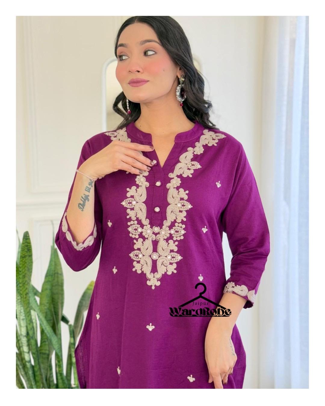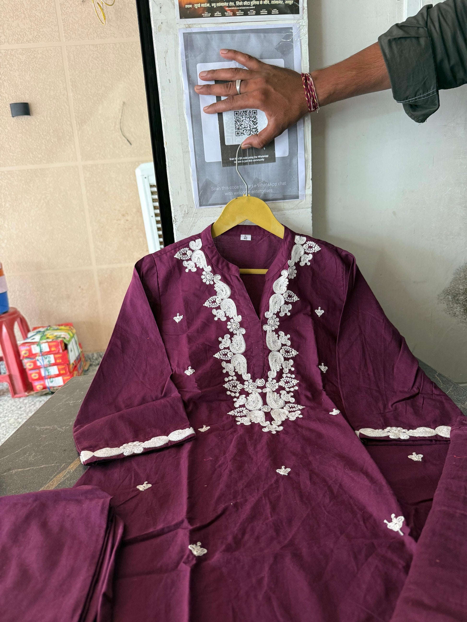 Details -: dyed cotton3 pis  kurti suit setwith plazo and mulmul duptta...