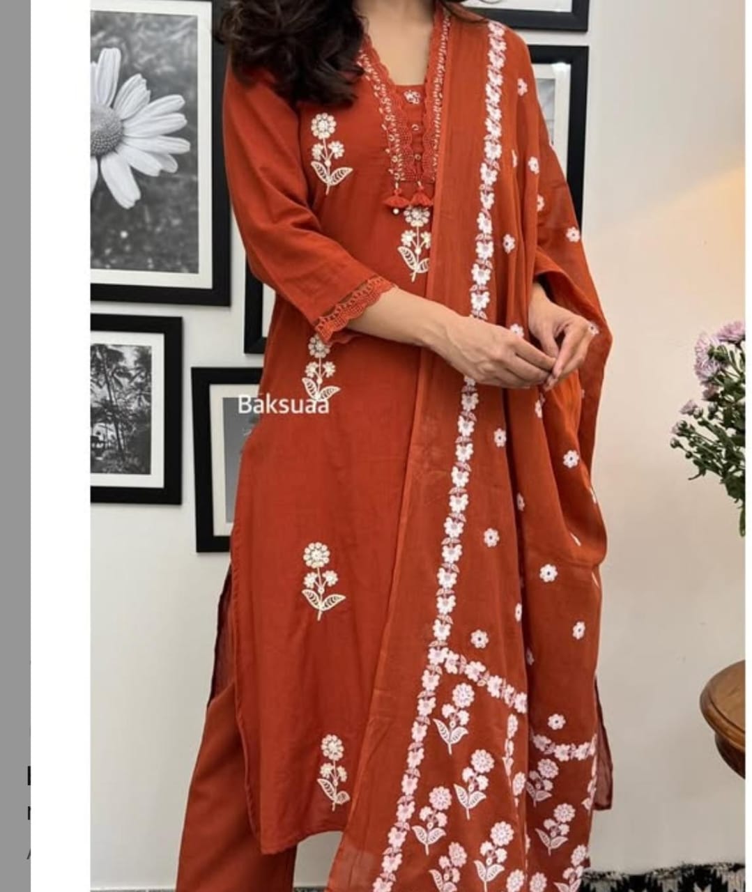 🌼 Designer embroidered work kurti & pent duppata set " Premium Fine Cotton 60#60" with heavy embroidery work all over kurti with handwork on neck .
