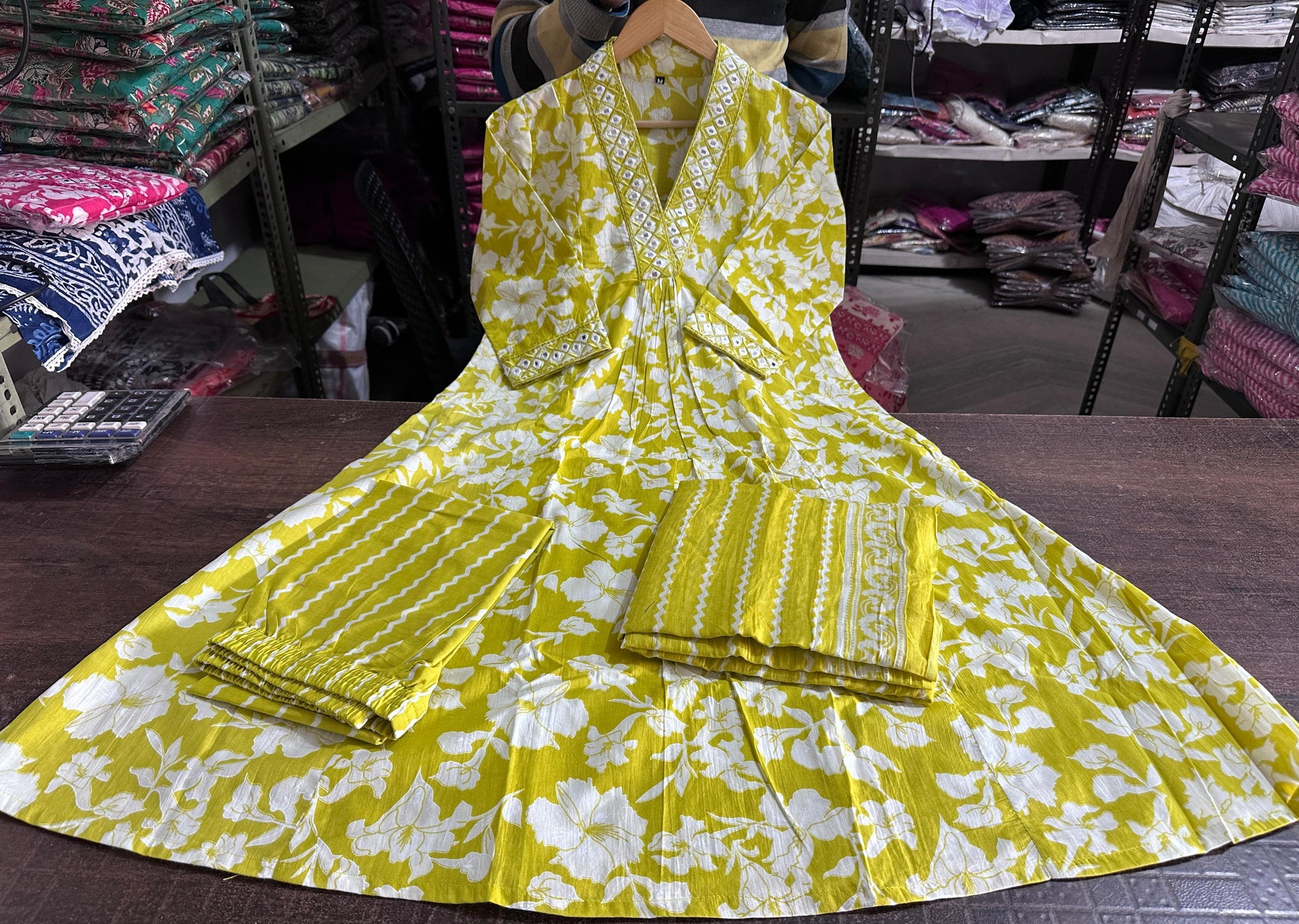*Beautiful Pure Cottton Block Printed Handwork Detailing Straight Cut Suit Set.Paired Up With Cotton Pant & Hand Printed Mul Cottom Dupatta*Β