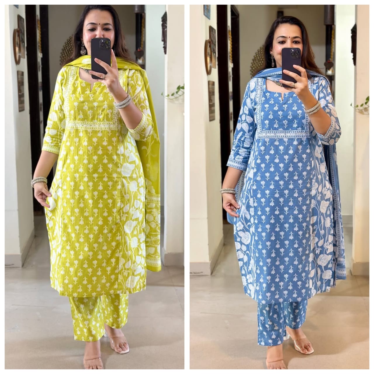 *Details -: Beautiful Cotton Fabric Kurti Pant & Dupatta*